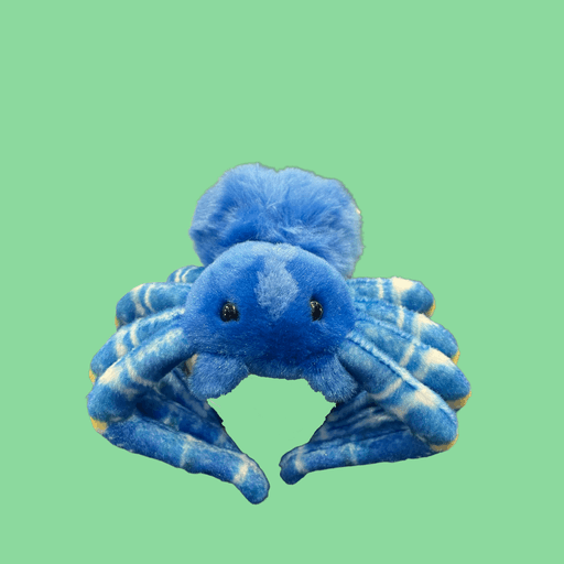 Denne blå edderkopp-bamsen på 17 cm er en sjarmerende og myk liten skapning med et vennlig uttrykk. Den runde kroppen, de åtte myke beina og den fluffy bakdelen gir et lekent og koselig preg, perfekt for barn som liker litt annerledes kosedyr.