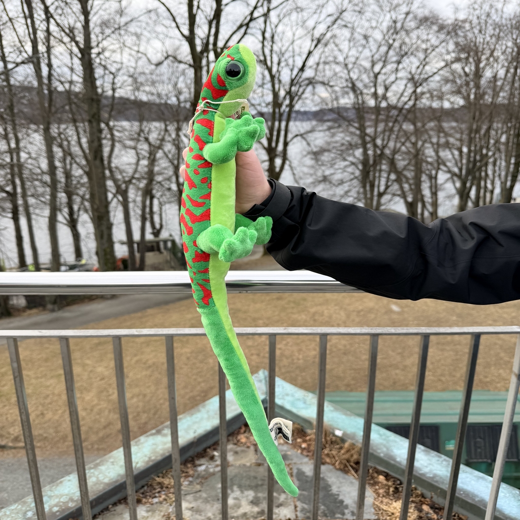 Gekko bamse grønn 60 cm, Fargerik og myk favoritt! Stor grønn gekko bamse på 60 cm med lekne røde detaljer og myk kvalitet. Perfekt gave til små reptilfans og et populært minne fra Akvariet i Bergen. Bestill nå!