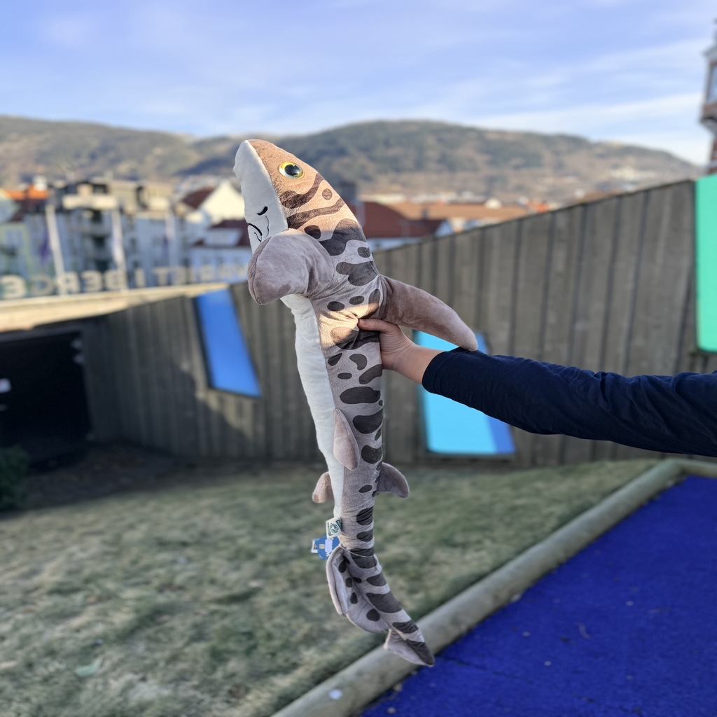 Hai bamse 100 cm – Bambushai kombinerer imponerende størrelse med deilig mykhet. Et kosedyr som virkelig skiller seg ut og gir ekte havfølelse hjemme. Finn den i butikken på Akvariet i Bergen.