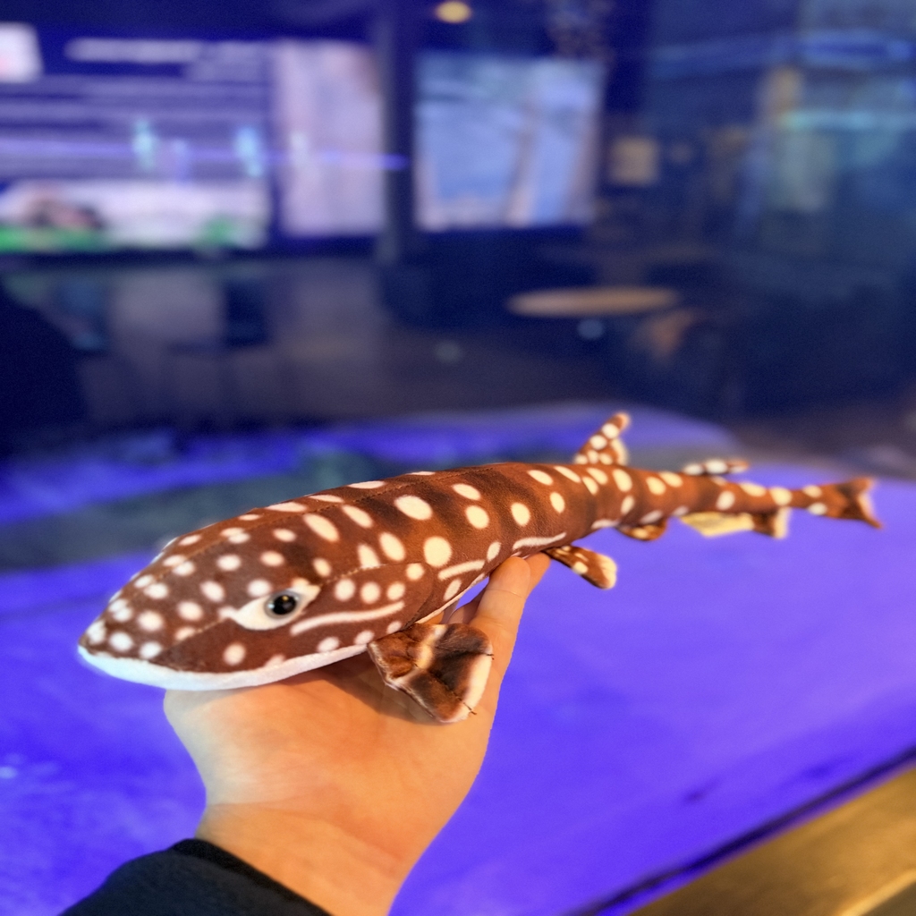 En ekstra myk og dekorativ haibamse inspirert av den eksotiske korall-katthaien. Med sitt karakteristiske flekkmønster og rolige uttrykk er dette en kosebamse som skiller seg ut – perfekt for barn som elsker havdyr, eller som en unik gave til små og store.