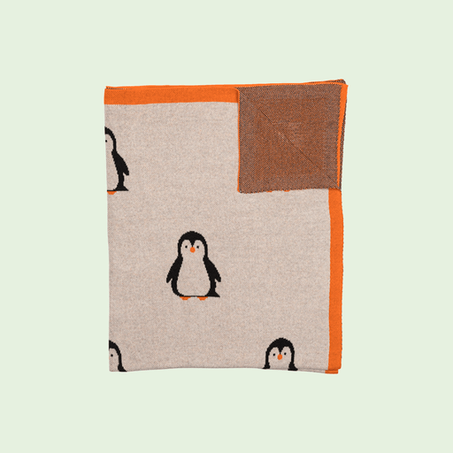 Mykt og koselig teppe i økologisk bomull med søte pingviner. Perfekt for sofaen, barnerommet eller som en varm venn på kalde dager.