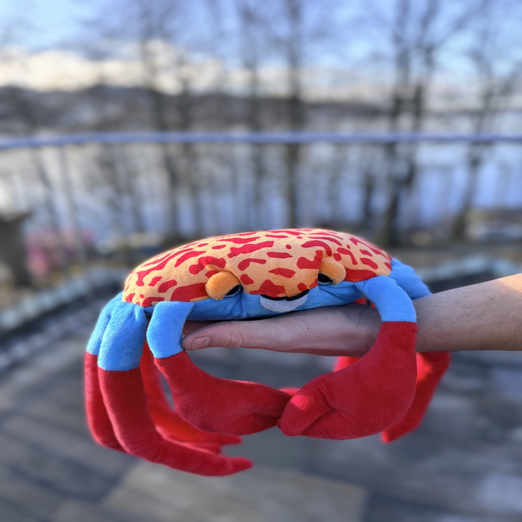 En fargerik krabbe-bamse på hele 67 cm, perfekt for små (og store) som elsker livet i havet. Med lange, myke bein og kraftige klør er dette en imponerende bamse som virkelig synes.