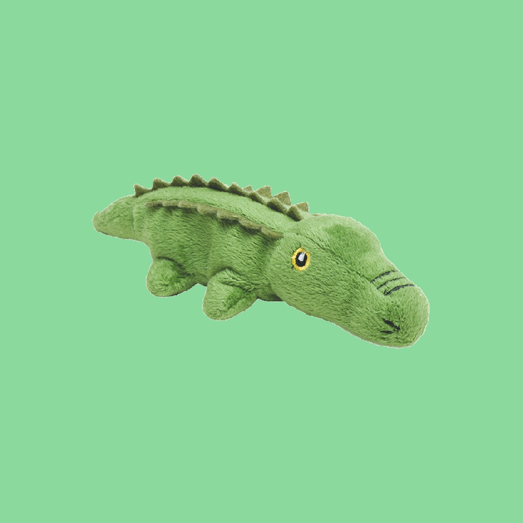 Denne grønne krokodille-bamsen på 15 cm er en liten og sjarmerende kosefigur med et vennlig uttrykk. Den kompakte kroppen, korte beina og den markerte ryggkammen gir et tydelig krokodillepreg. Samtidig som den er myk, trygg og god å holde i.