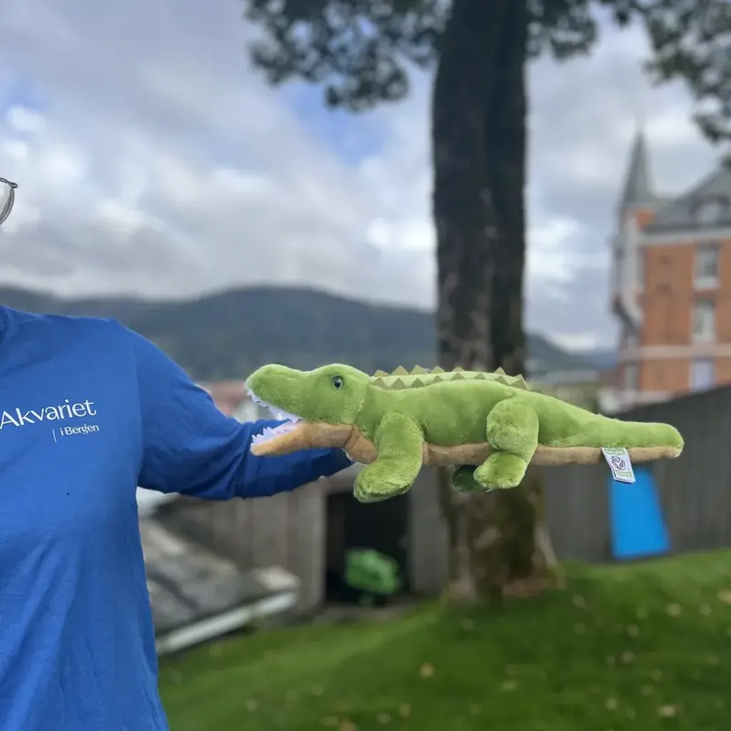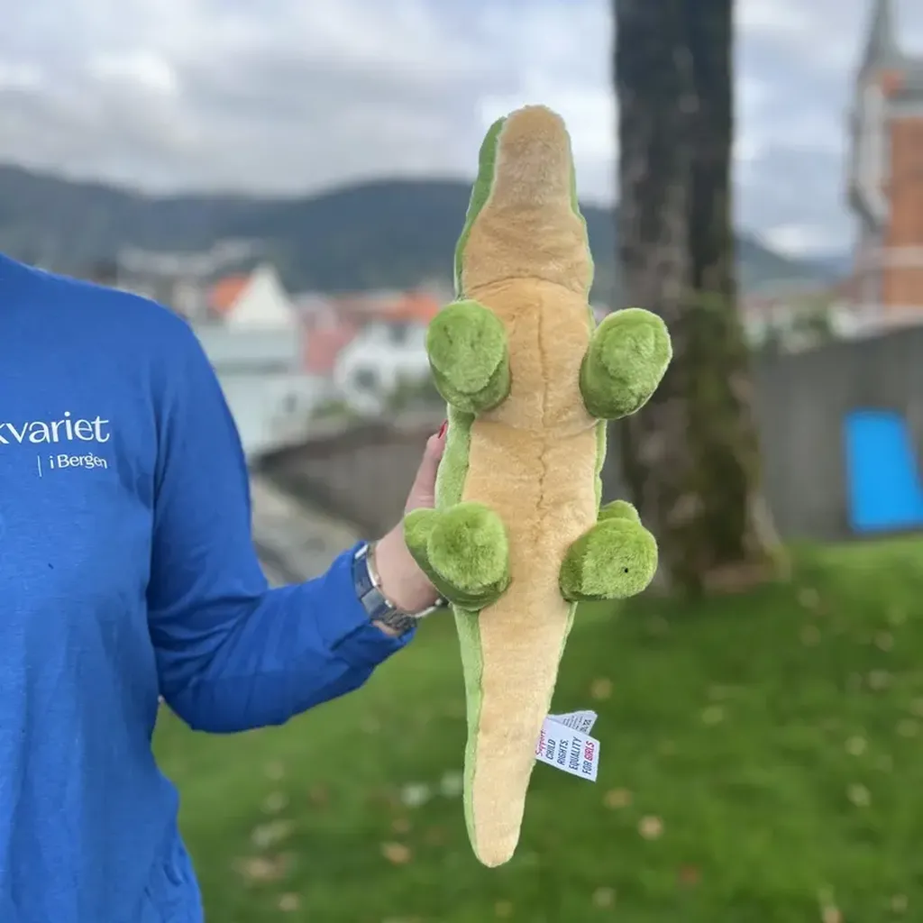 Bamse krokodille med markert uttrykk og grønne detaljer som gir et lekent preg. Et mykt kosedyr som passer godt til lek, kos og som gave for barn og voksne.