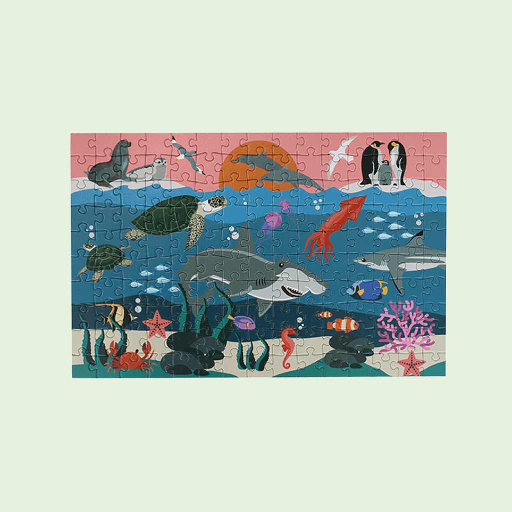 Puslespill med 150 biter! Pusle frem både haier, pingviner, fisker og koraller.