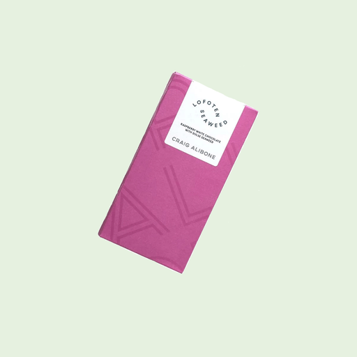 En sjokolade som passer like godt til hverdag som til fest. Nyt den sammen med familie og venner, eller gi den i gave til noen du mener fortjener en helt spesiell smaksopplevelse fra Lofoten. Ingredienser: Opalys 33% hvit sjokolade, kakaosmør, sukker, melkepulver, bringebær, palmaria palmata, vanilje, soya lecitin