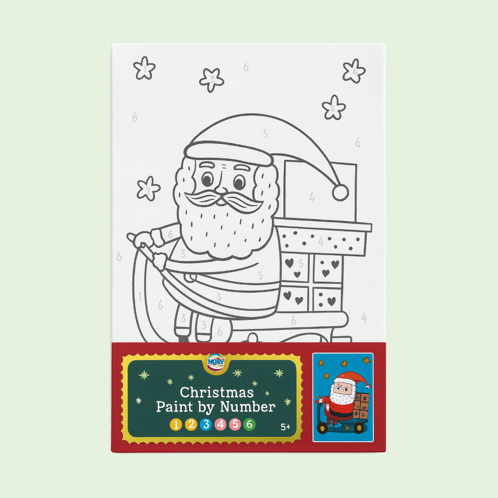 Gi barna en kreativ og koselig juleaktivitet med dette sjarmerende Christmas Paint by Number-settet! Motivet viser en glad julenisse på sleden sin fylt med gaver, og de tydelige tallfeltene gjør det enkelt for barn å male motivet trinn for trinn.