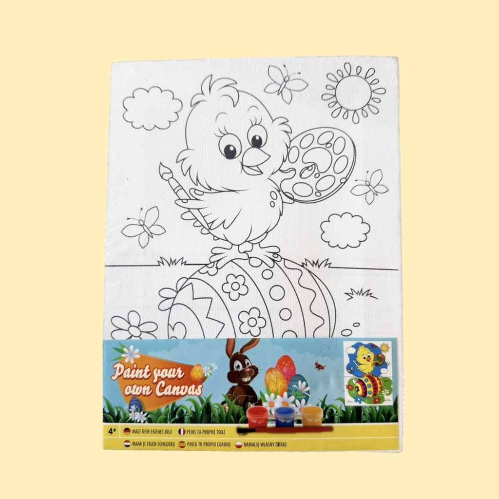 La barna utfolde seg kreativt med dette male-selv-settet! Inneholder lerret med påskekylling-motiv, pensel og farger. En perfekt aktivitet for små kunstnere i påsken.