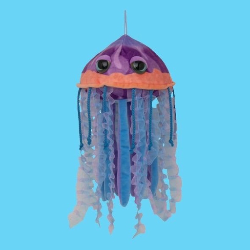 Denne manetbamsen er en fargerik og dekorativ kosefigur inspirert av havets rolige og svevende skapninger. Med sitt myke hode og lange, flagrende tentakler passer den like godt som dekorasjon som til rolig lek og kos. Størrelsen gjør den enkel å henge opp eller plassere på barnerommet.