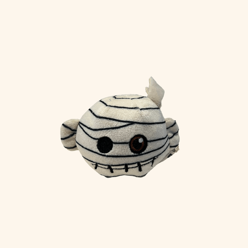 Denne lille mummien er pakket inn i myk plysj og klare for halloween-moro! Med broderte «bandasjer» og et rampete smil er den en perfekt blanding av søt og skummel. Den kompakte formen gjør den fin å holde, kaste, samle eller bruke som pynt.