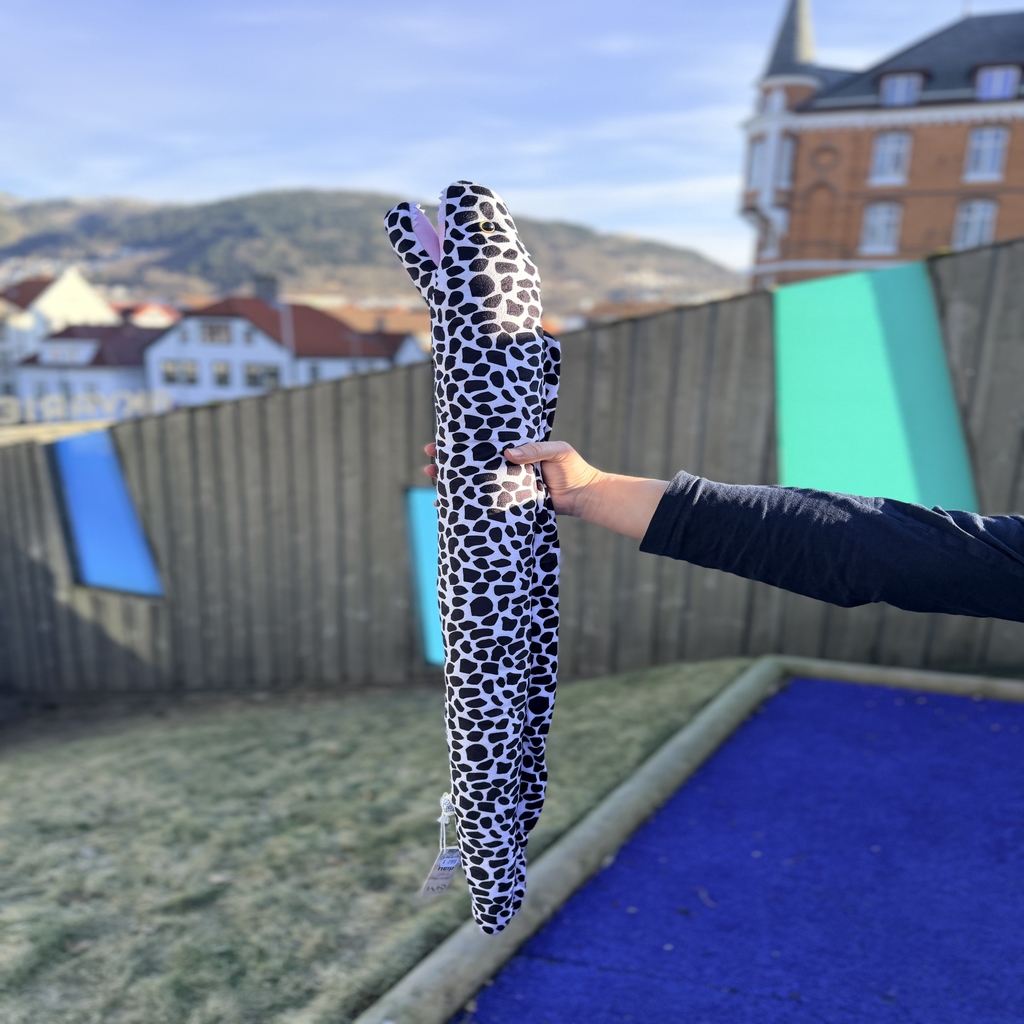 En lang, myk og skikkelig kul bamse inspirert av leopardmurenen. Med sitt karakteristiske flekkmønster og imponerende lengde på hele 90 cm blir dette raskt en favoritt – enten til lek, kos eller som et blikkfang på barnerommet.