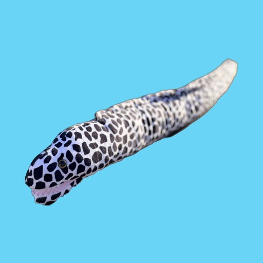Leopardmurenen er kjent for sitt prikkete mønster og slangeaktige form, og dette er gjenskapt i en ekstra myk og fleksibel bamse. Perfekt å slenge over senga, bruke som kosepute eller ta med i leken.