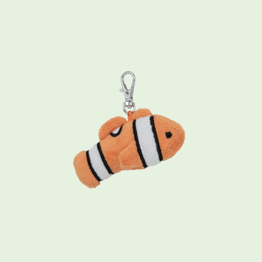 Denne nøkkelringbamsen forestiller en Klovnefisk og er både søt og praktisk! Den har myk plysj og et solid metallfeste som tåler daglig bruk. Perfekt som pynt på nøklene, sekken eller vesken, eller som en liten gave til noen du er glad i.