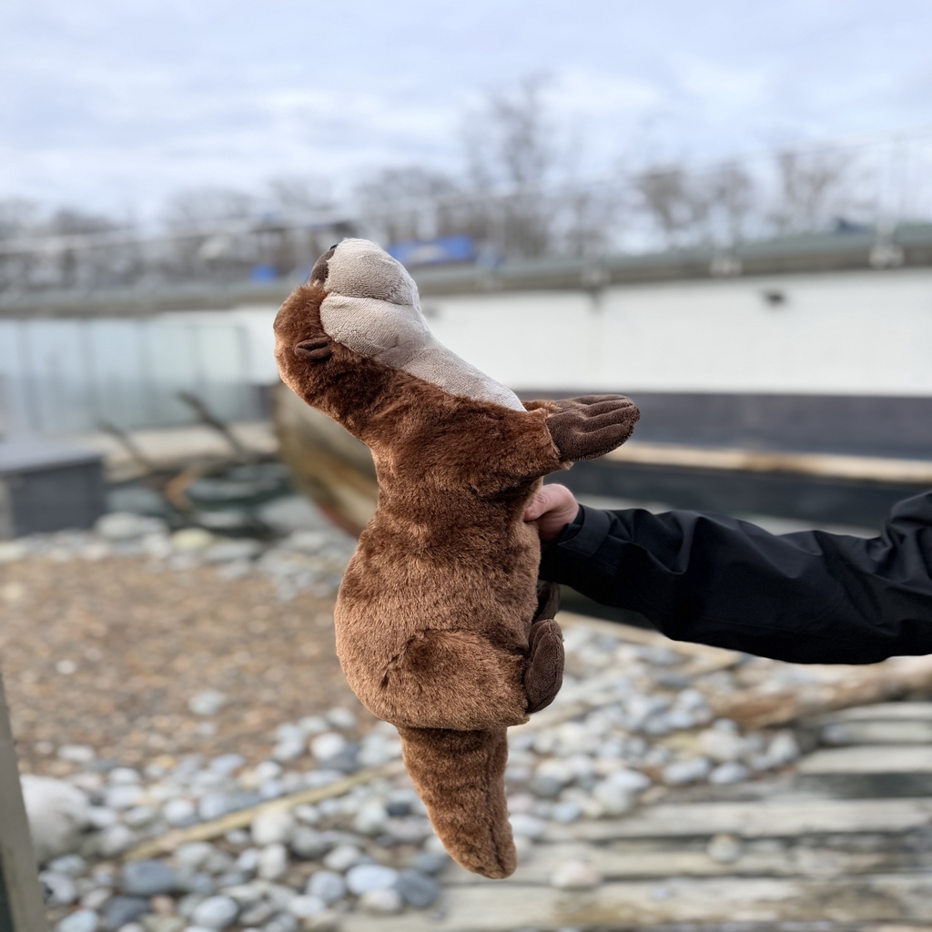 Denne naturtro oter-bamsen på 60 cm er en myk og sjarmerende kosefigur med realistiske detaljer og et vennlig uttrykk. Den langstrakte kroppen, de korte beina og den avrundede snuten gir et troverdig preg – samtidig som den er myk, trygg og god å klemme.