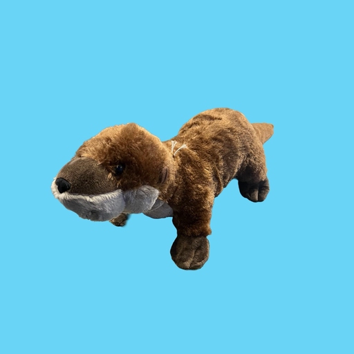 Bamsen ligger stabilt på underlaget med sine fire solide bein og lange kropp. Den myke pelsen har en fin struktur som gir et livlig uttrykk, og de blanke øynene og den avrundede snuten gir oteren et mildt og koselig preg.