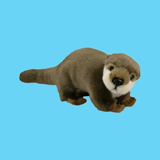 Bamsen har en langstrakt kropp med hale, korte ben og et avrundet hode som gir et tydelig oterpreg. Fargene er holdt i naturlige bruntoner med lysere partier rundt snuten, noe som gir et realistisk og dempet uttrykk. Overflaten fremstår jevn og myk, og detaljene er tydelige uten å virke harde eller skarpe.