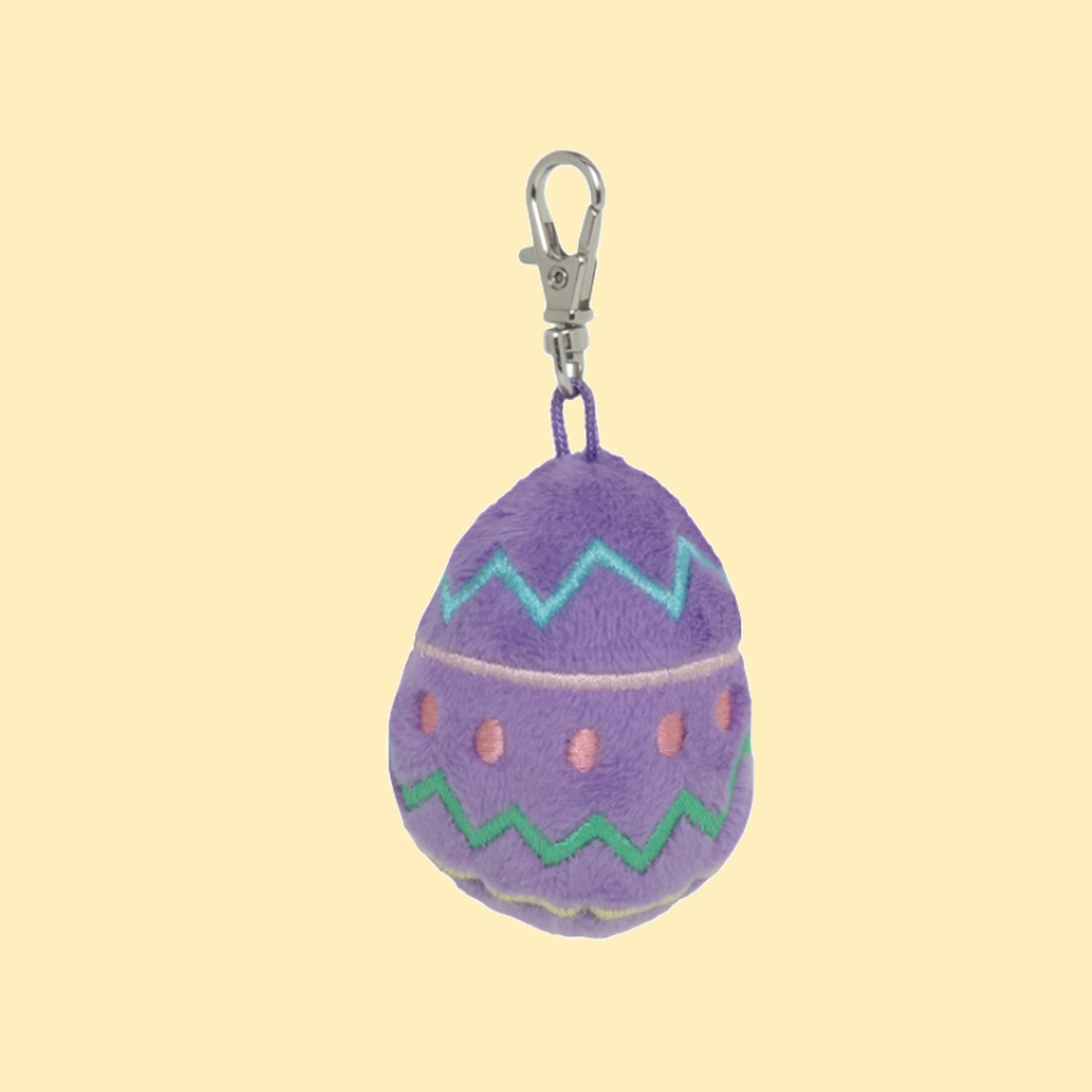 Piff opp sekken med en myk påskeegg-nøkkelring i lilla plysj! Dekorert med fargerike sikksakk-mønstre. Perfekt som liten gave i påskeegget. Kjøp her!