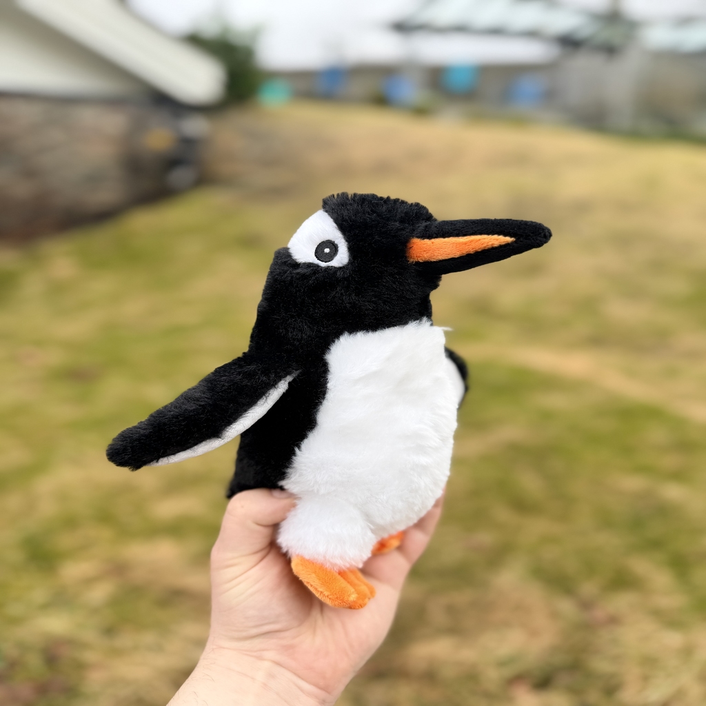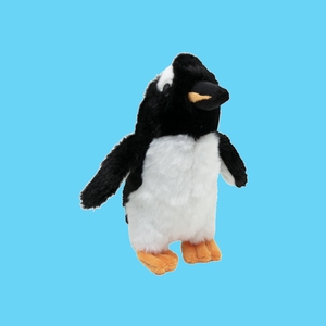 Denne flotte pingvinbamsen på 22 cm er en sjarmerende representant for de populære fuglene vi har hos oss. Med sin stødige fasong og myke overflate passer den like godt som en kosevenn i sengen som et dekorativt element i bokhyllen.