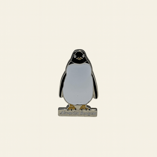 Pingvin pin som kan festes på klær eller tekstil.