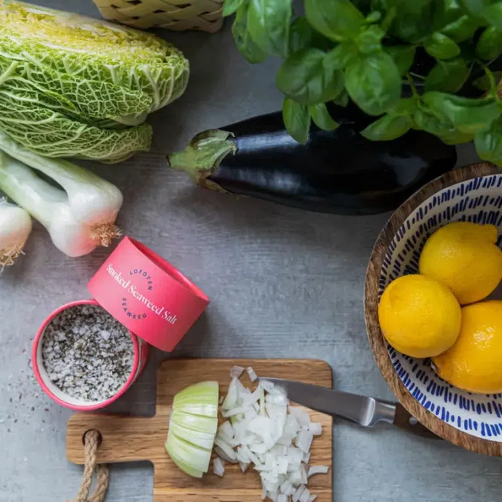 Gi maten din en dyp, røkt aroma med vårt unike tangsalt. Laget av havsalt og røkt butare (nordisk wakame) fra Lofoten. Perfekt til kjøtt, fisk og grønnsaker!