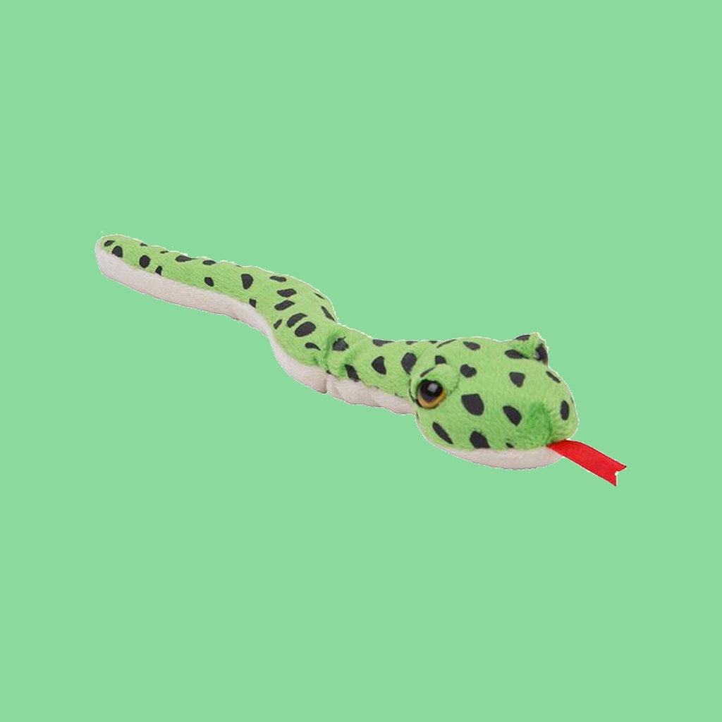 Slange bamse grønn 25 cm – Detaljert design med flekkmønster og uttrykksfulle øyne. En spennende gave til små eventyrere. Kjøp din her!