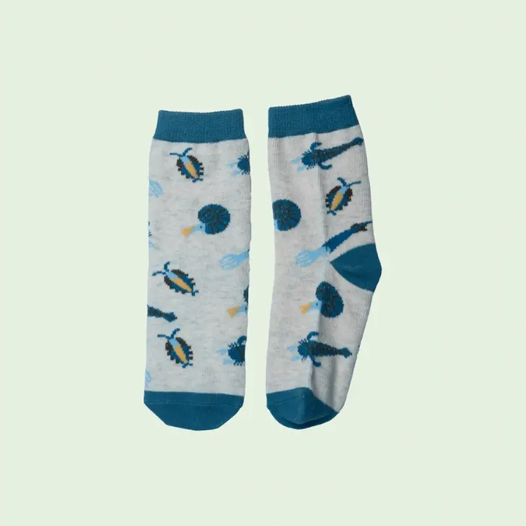 Disse sokkene er laget av en myk og fleksibel bomullsblanding som er skånsom mot sart barnehud. Med et lekent fossilmotiv med insektdetaljer er de godt egnet til barnehage, lek og hverdagsbruk hvor komfort og bevegelsesfrihet er viktig.