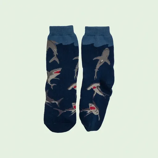 Disse sokkene er laget av en myk og fleksibel bomullsblanding som er skånsom mot sart barnehud. Med et tøft haimotiv er de godt egnet til barnehage, lek og hverdagsbruk, samtidig som de gir god komfort gjennom hele dagen.