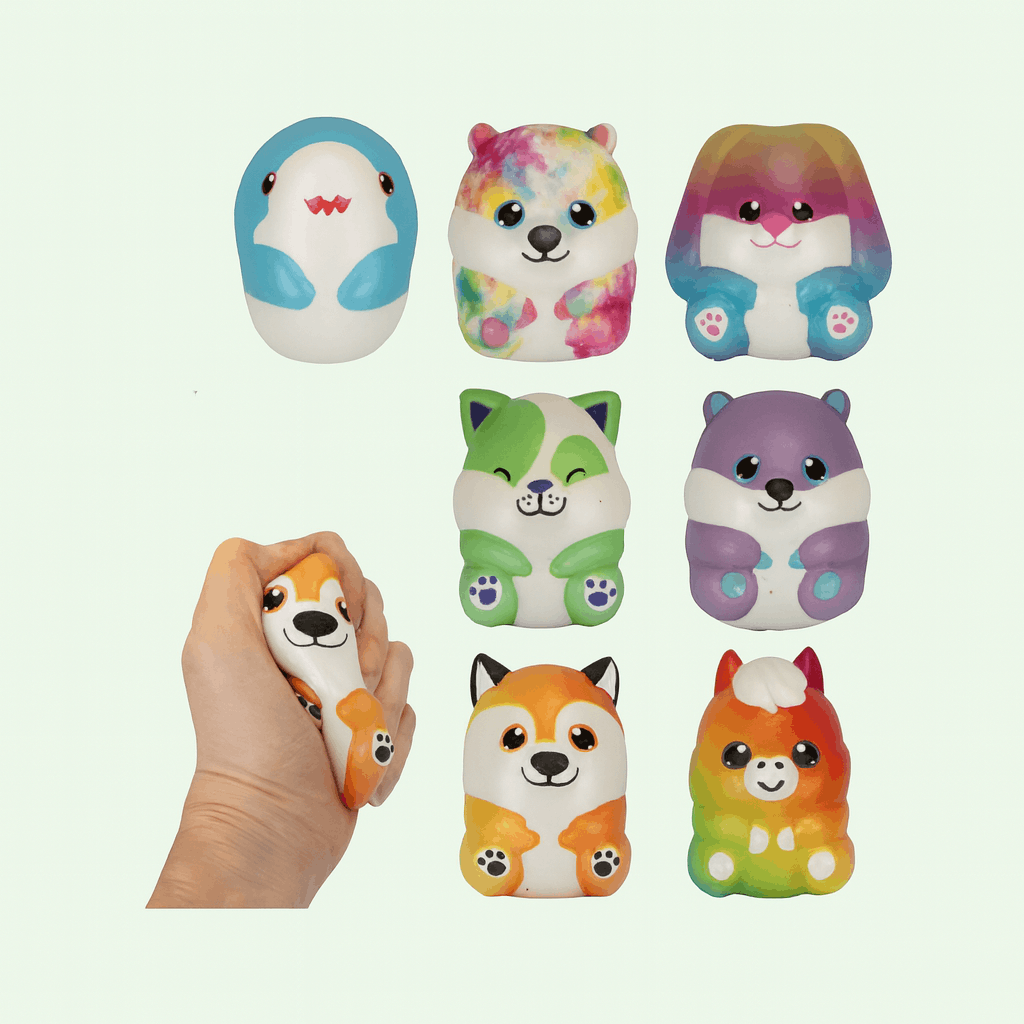 Myke og klemmete Squish'ems Dyr, perfekte for små hender og stressfri kos!