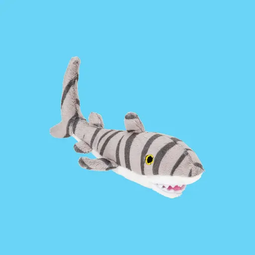 Tigerhai bamse 14 cm er en morsom gave til barn som er nysgjerrige på livet i havet. Et kosedyr som inviterer til lek, fantasi og læring om haier.