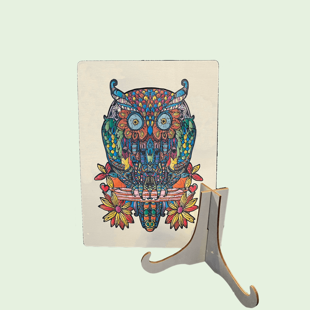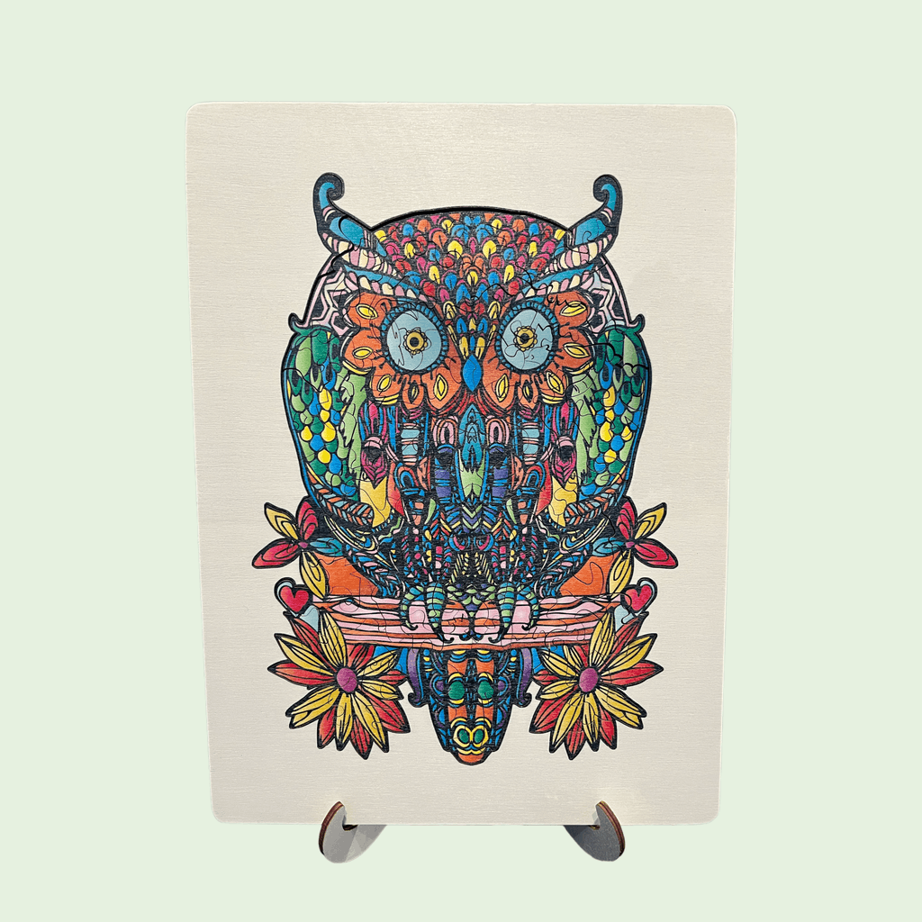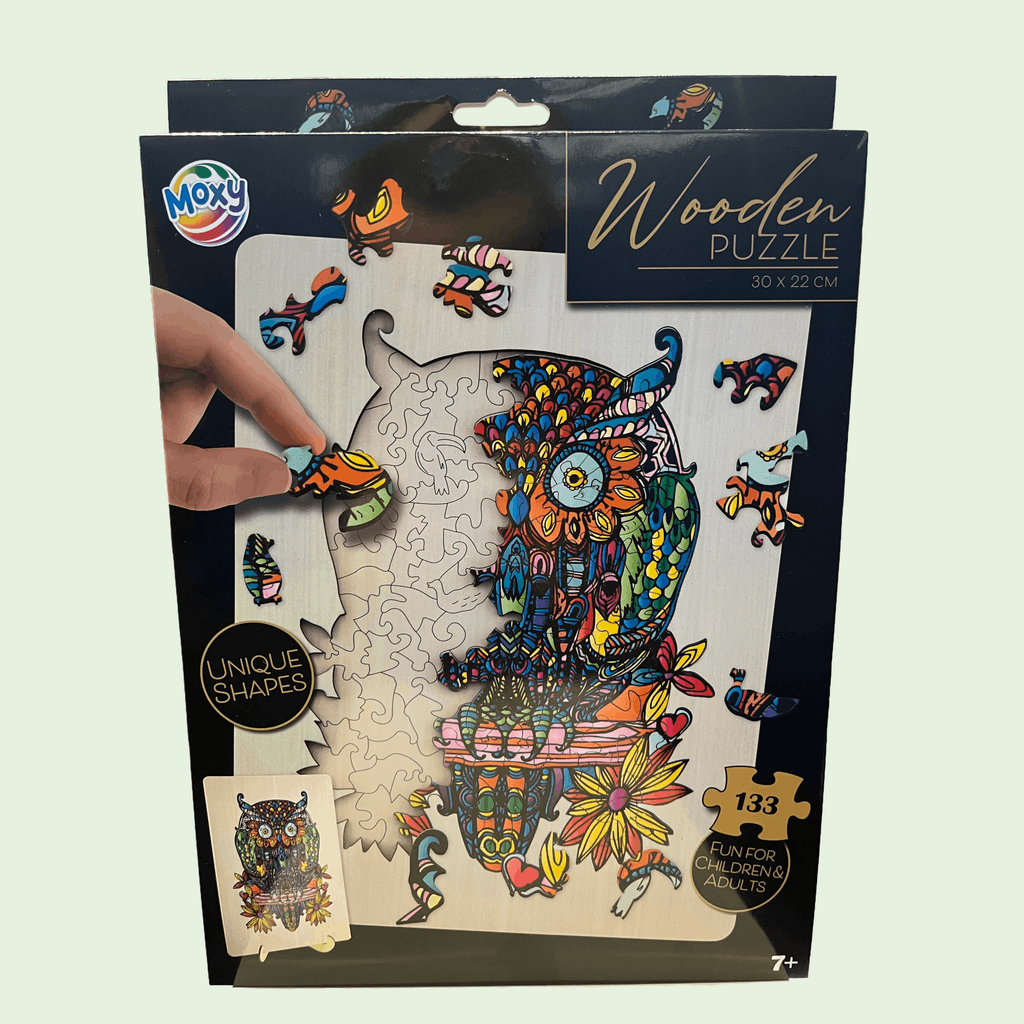 Et fargerikt og detaljert trepuslespill formet som en ugle! Med 133 solide trebrikker, inkludert små dyr og kreative former, får du en annerledes og underholdende pusleopplevelse.